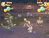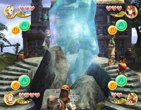 Noticeable are the A- and B-buttons below the player's names. The A-button is marked with the action currently used, if there's such an action available. For actions or spells that can be charged, there was an extra display of the charge status below the player's name. The buttons have been exchanged with a menu in the final version which shows the current version and the ability-slots available.